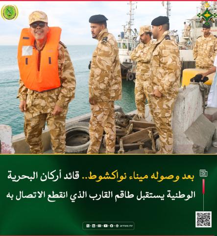 استقبل الفريق أحمد ولد بنعوف؛ قائد أركان البحرية الوطنية، رفقة عدد من قادة المكاتب والمصالح التابعة لأركان البحرية، على رصيف ميناء الصداقة بنواكشوط، طاقم القارب الذي انقطع الاتصال به ليلة 20 إلى 21 يناير 2026، قبل العث