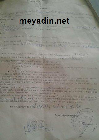 وقالت ذات المصادر، إن سكان بلدة "لحنيكات" التابعة لبلدية "المبروك" بمقاطعة باركيول، تقدموا خلال زيارة الوزير الأول الأخيرة للولاية، بمطلب لفتح محل من محلات "أمل" في بلدتهم، وهو ما تمت الموافقة عليه ضمن خمسة محلات، فتقدم الساكنة بمقترح يقضي بتعيين بونه ولد محمود، فحصل على عقد عمل من المفوضية-أنظر الوثيقة-، وقبل أن يباشر مسؤولياته تم تغييره تحت ضغط نافذين وعين بدلا منه الزين ولد بلال، الشيء الذي جعل هؤلاء المواطنين يحتجون على ما أقدمت عليه المفوضة، مستغربين تراجعها عن القرار السابق ورضوخها لإرادة نافذين يرى هؤلاء أنهم يسعون لتهميشهم وحرمانهم من حقوقهم في وطنهم.