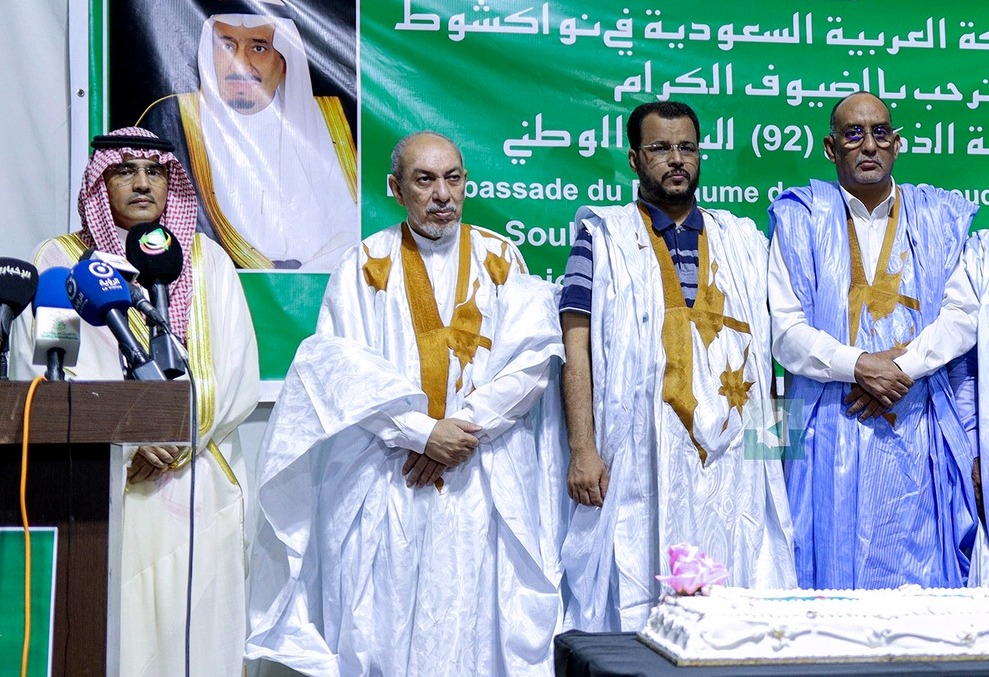 دفعت الحكومة الموريتانية بثلاثة وزراء فيها، لحضور الحفل المنظم من طرف السفارة السعودية، بمناسبة الذكرى 92 لليوم الوطني السعودي.