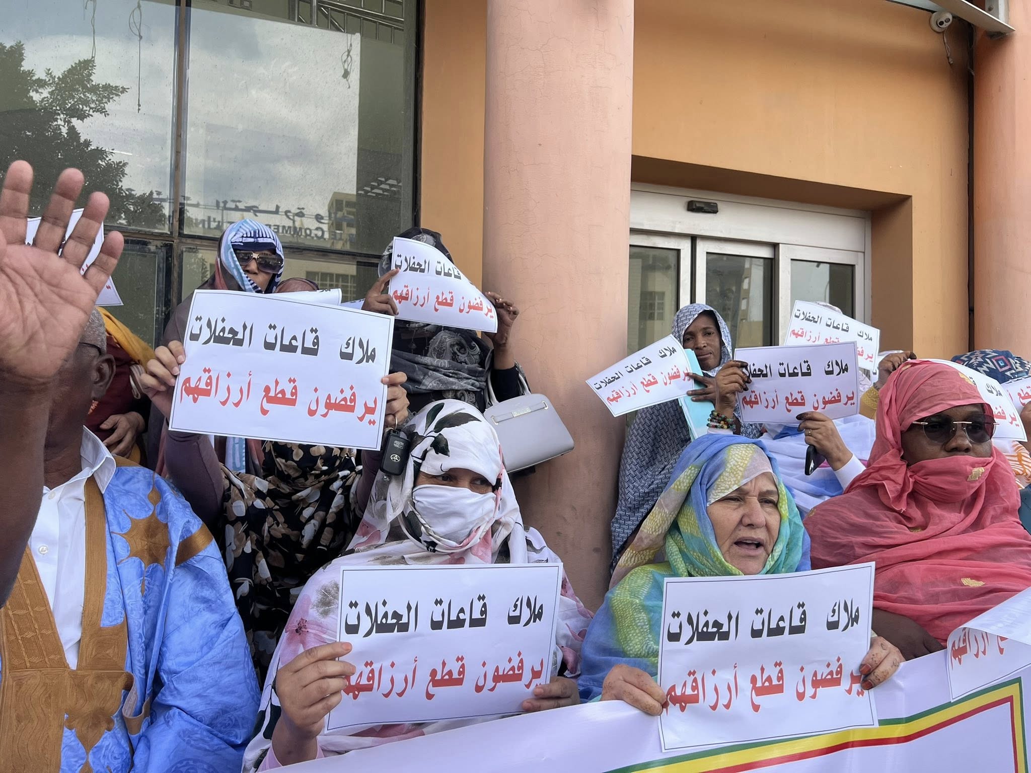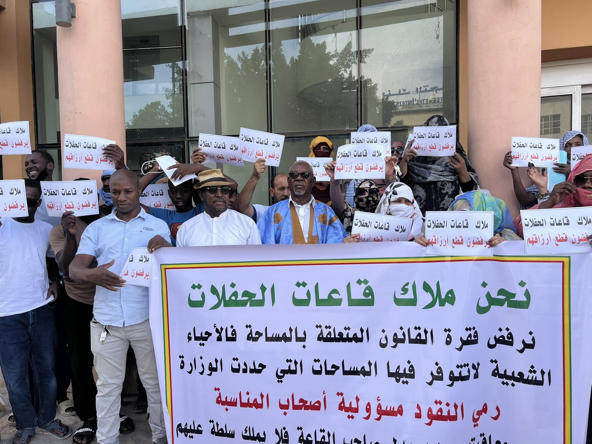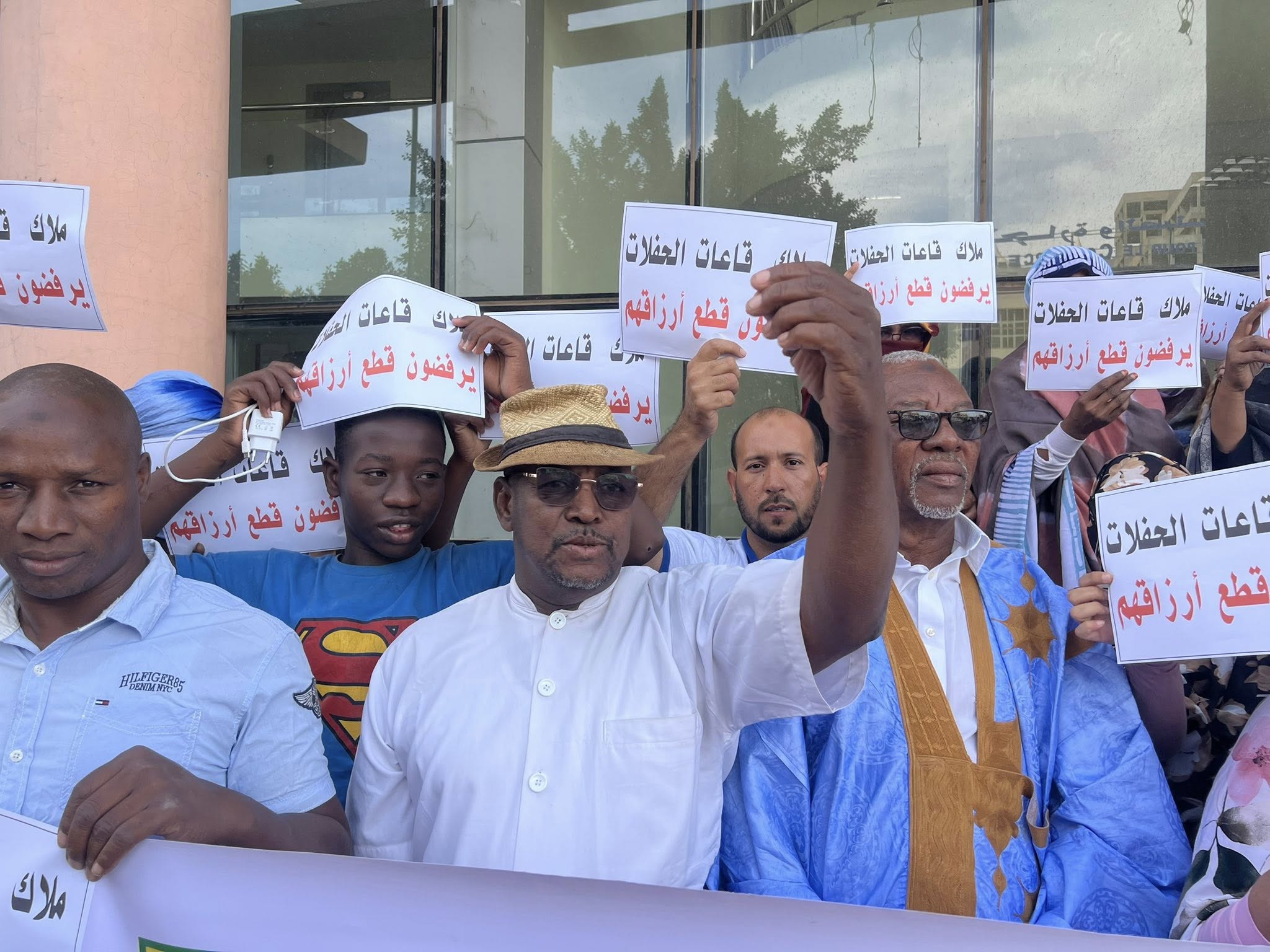 تظاهر يوم الخميس ملاك قاعات الحفلات أمام وزارة التجارة، مطالبين بمراجعة بعض القرارات الصادرة بشأن القاعات.