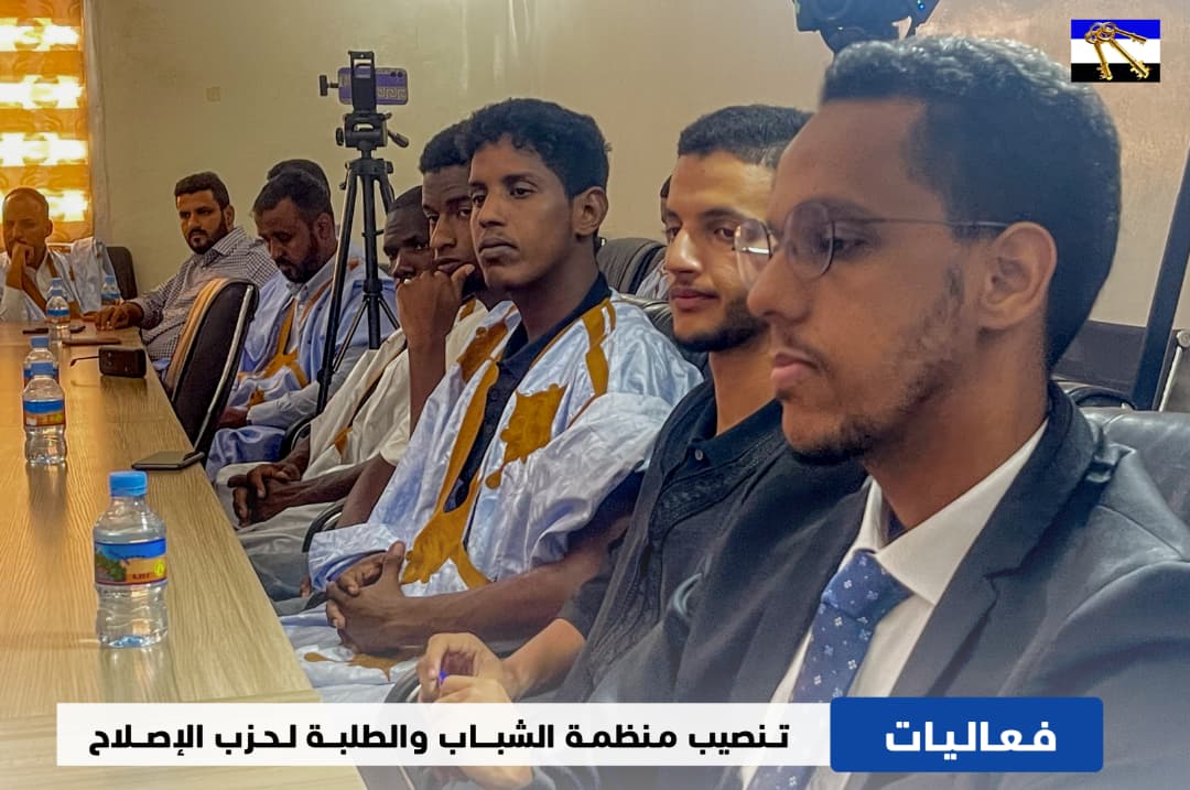 وقد أشرف على التنصيب رئيس الحزب الأستاذ محمد ولد طالبن بمقر الحزب المركزي بمقاطعة لكصر بحضور كل من : رئيس اللجنة التحضيرية للمؤتمر، أمين الإعلام ونائب رئيس لجنة الحكماء والمراقب العام والأمين الدائم للحزب وذلك في إطار تنصيب قيادات جديدة لمنظمة الشباب والطلبة
