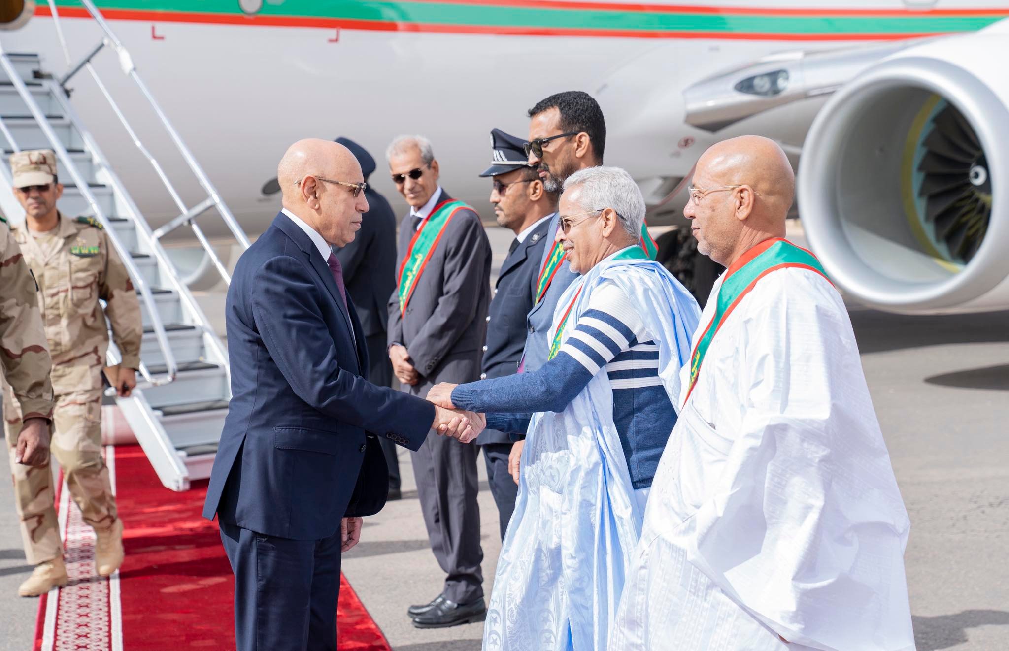 اقتصرت الاستقبالات في المطار على السلطات الإدارية وقادة الأجهزة العكسرية والأمنية والمنتخبين، بينما اصطف السكان على جنبات الطريق، حاملين صور الرئيس غزواني والعلم الوطني.