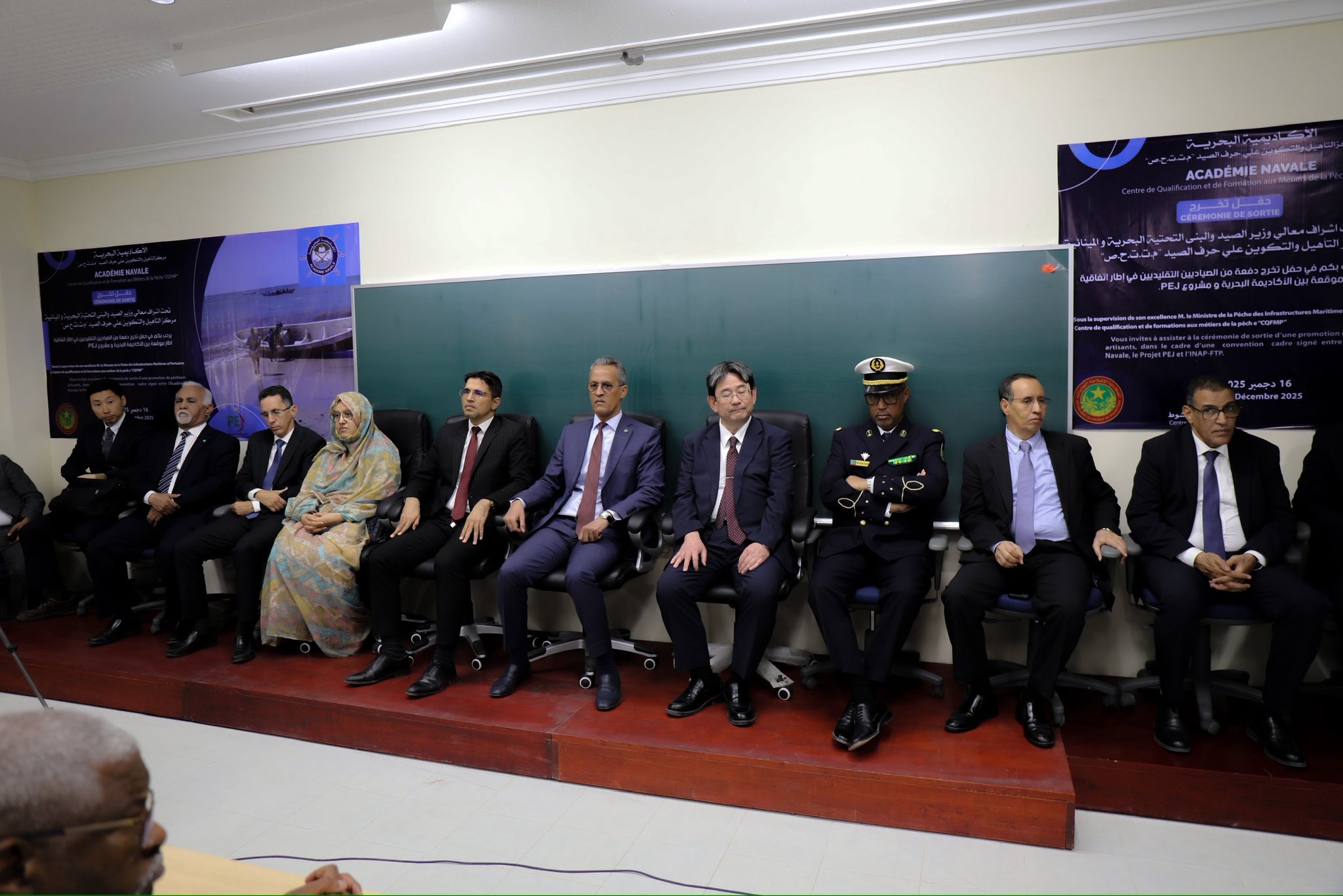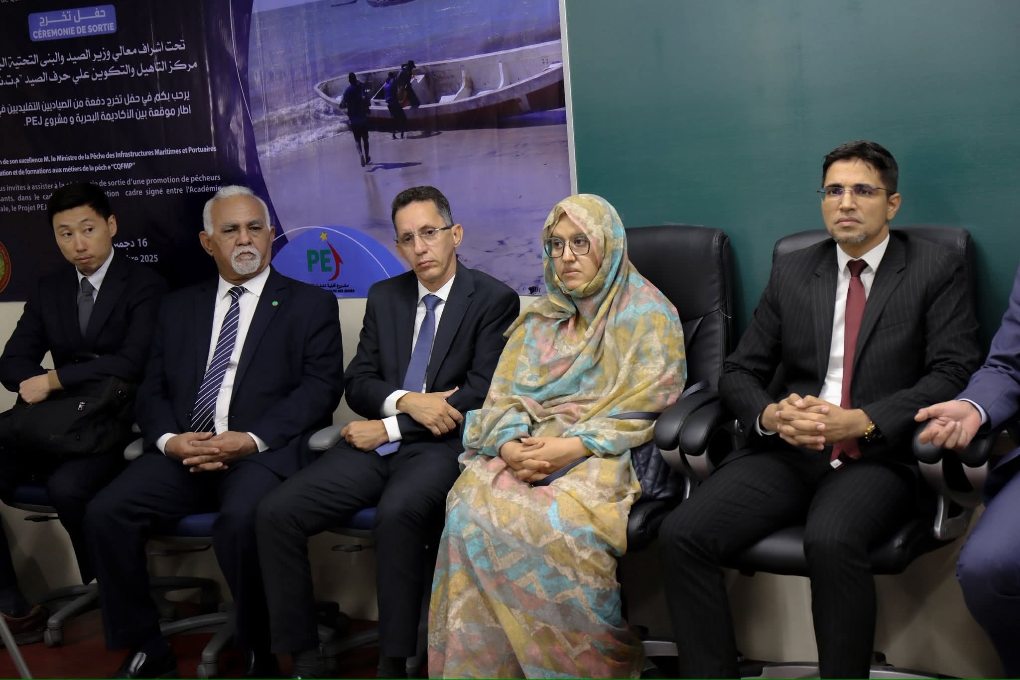 شهد مقر "مركز التأهيل والتكوين على حرف الصيد" التابع للأكاديمية البحرية في العاصمة نواكشوط يوم الثلاثاء الموافق 16 دجمبر ، إشراف وزير الصيد والبنى التحتية البحرية والمينائية، المختار أحمد بو سيف، رفقة وزير تمكين الشباب والتشغيل والرياضة والخدمة المدنية، محمد عبد الله ولد لولي، على حفل تخرج الدفعة الثانية من برنامج التكوين على تقنيات صيد الأخطبوط، والتي تلقت التكوين بموجب اتفاقية شراكة بين المعهد الوطني لترقية التكوين الفني الدولي، عبر مشروع «تشغيل الشباب» (PEJ).