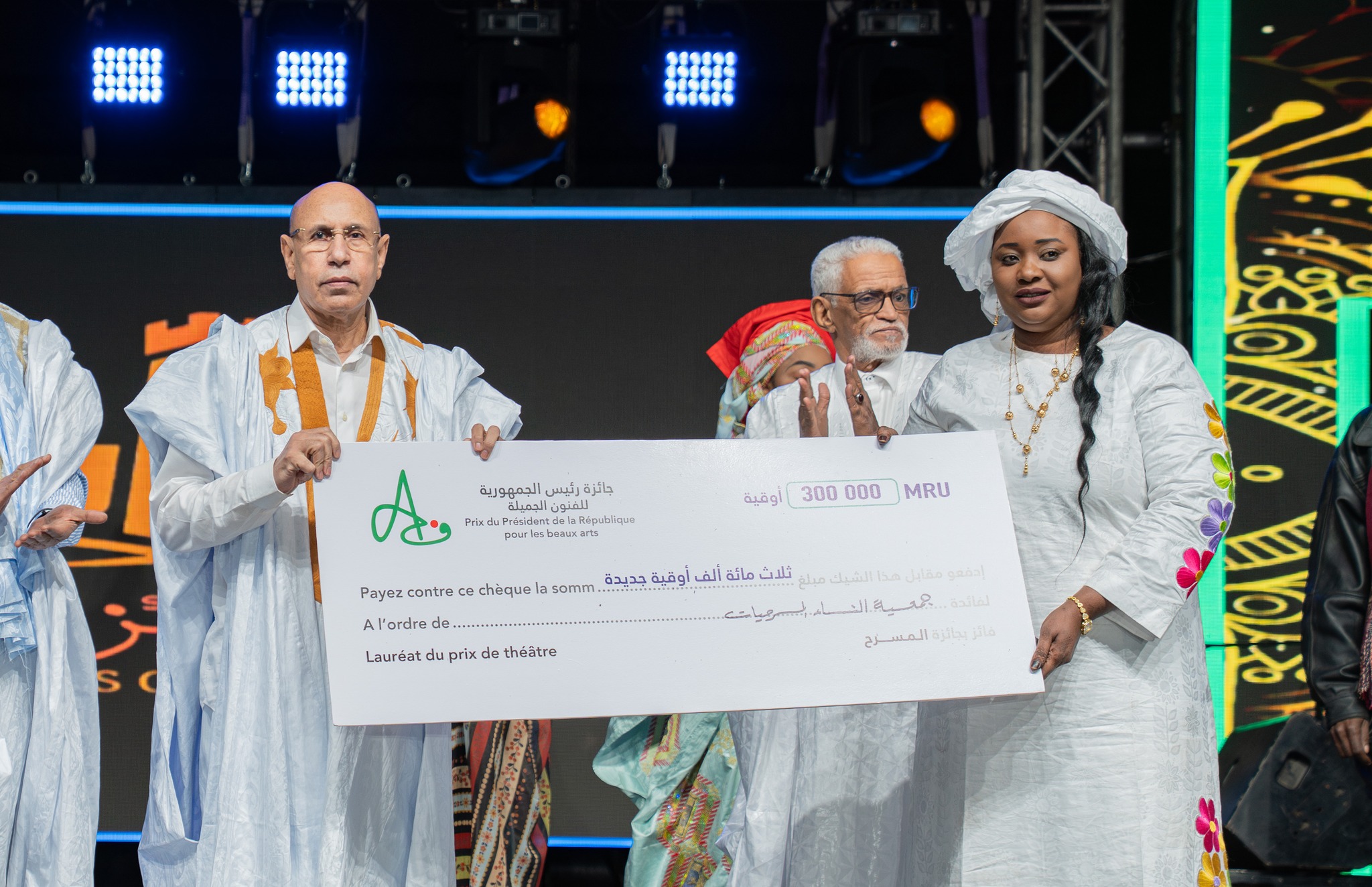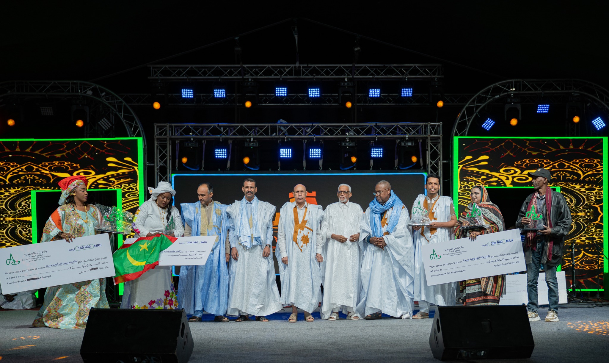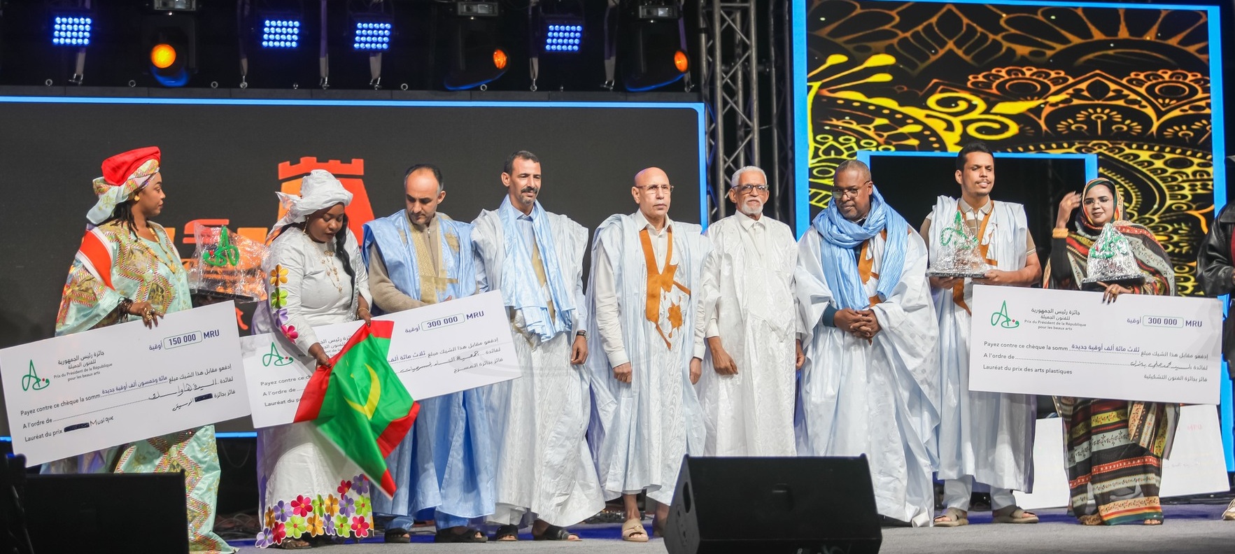 واختتمت السهرة بتكريم الفائزين في جائزة رئيس الجمهورية للفنون الجميلة، حيث تسلم الفائزون جوائز من الرئيس محمد ولد الغزواني، وهم على التوالي: عيشة ديكو، في مجال المسرح عن النساء المبدعات، ومحمد ولد الطلبه، في مجال السينما، ومحمد عالي ولد بلال، في مجال الفن التشكيلي، والفنانتان، هاوا سك، وجدة بنت الراظي، في مجال الموسيقى.