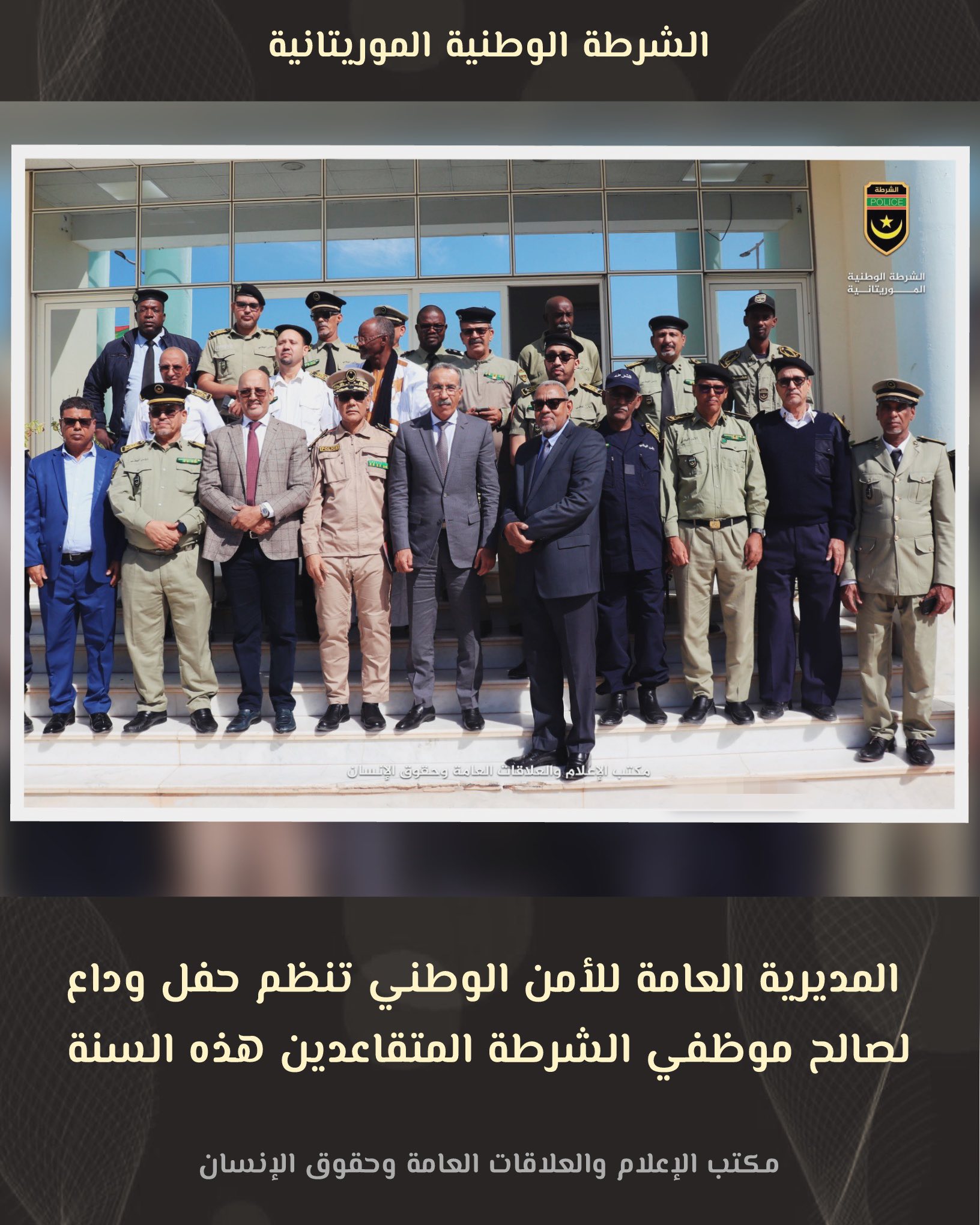 تمت رسميا إحالة ثلاثة ضباط من الشرطة الموريتانية إلى التقاعد يوم 31 دجمبر، وشاركوا في حفل توديع نظمته الإدارة العامة للأمن الوطني للمتقاعدين، بإشراف المدير العام الفريق محمد ولد لحريطاني بحضور عدد من الضباط السامين في القطاع.