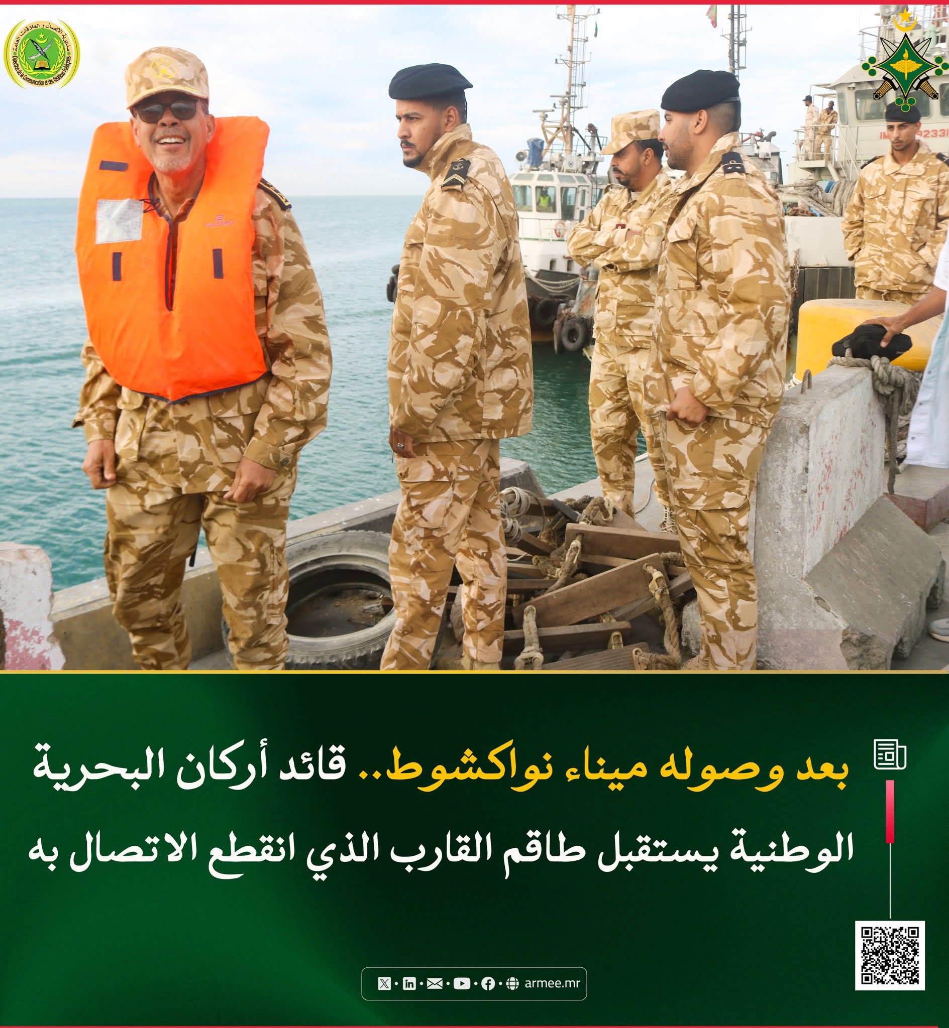 استقبل الفريق أحمد ولد بنعوف؛ قائد أركان البحرية الوطنية، رفقة عدد من قادة المكاتب والمصالح التابعة لأركان البحرية، على رصيف ميناء الصداقة بنواكشوط، طاقم القارب الذي انقطع الاتصال به ليلة 20 إلى 21 يناير 2026، قبل العثور عليه مساء أمس الخميس، إثر عملية بحث وإنقاذ ناجحة.