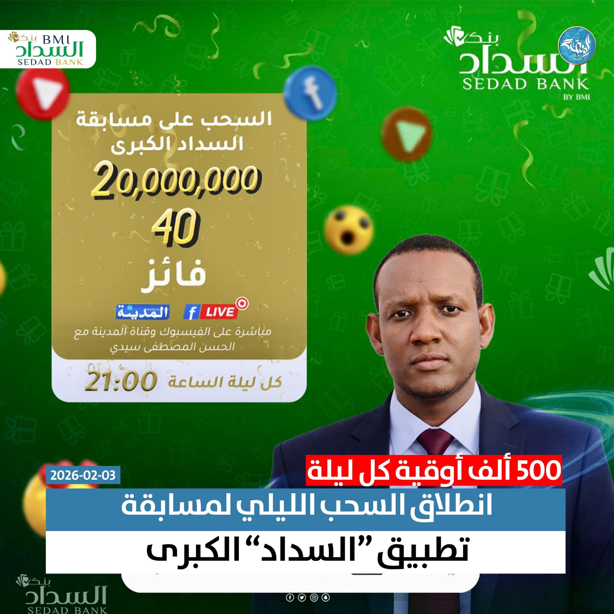 ومن المقرر أن يتم السحب مباشرة عند الساعة التاسعة مساءً (21:00)، عبر الصفحة الرسمية لتطبيق السداد على موقع فيسبوك، وبالتزامن مع البث على قناة المدينة الفضائية، ومنصة المنصة في أجواء من الشفافية والتفاعل المباشر مع الجمهور.