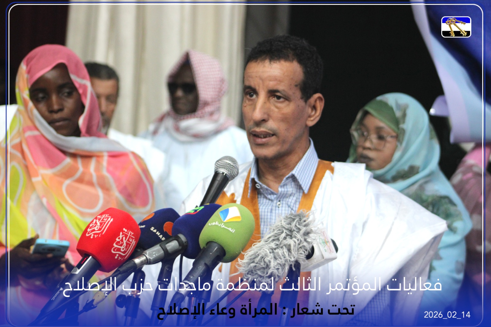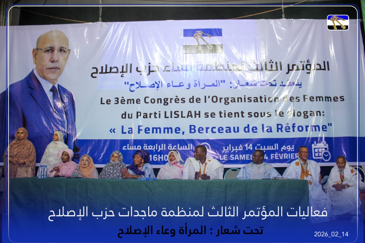 جاء في إيجاز صادر عن حزب "الإصلاح": "عقدت منظمة نساء حزب الإصلاح مساء السبت 14 فبراير 2026. في العاصمة نواكشوط مؤتمرها الثالث، تحت شعار: “المرأة وعاء الإصلاح”، وسط حضور واسع من قيادات الحزب وجمهور من مناصريه.