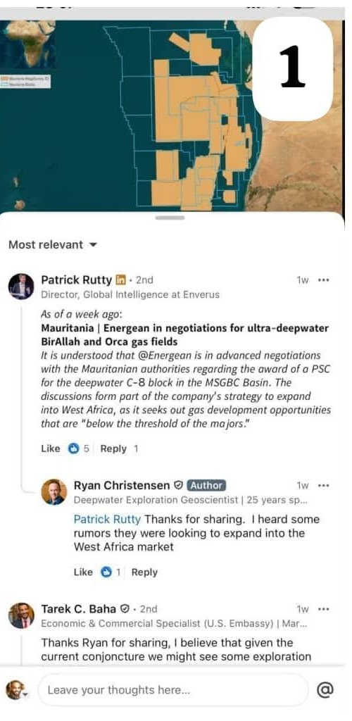 #موريتانيا : #إنرجيان في مفاوضات بشأن حقلي بير الله وأوركا للغاز في المياه فائقة العمق.