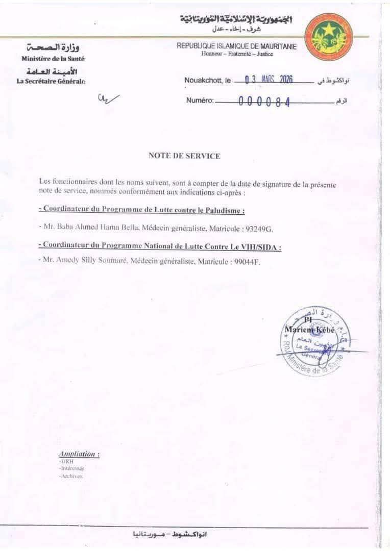 فقد تم تعيين منسق لبرنامج محاربة السيدا هو حمدي سولي سوماري وآخر للبرنامج المخصص لمحاربة الملاريا، هو باب أحمد حم بله.