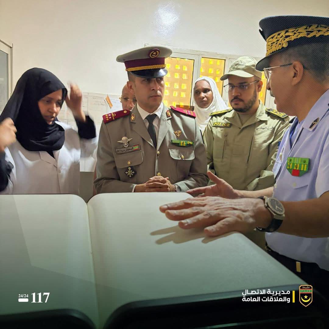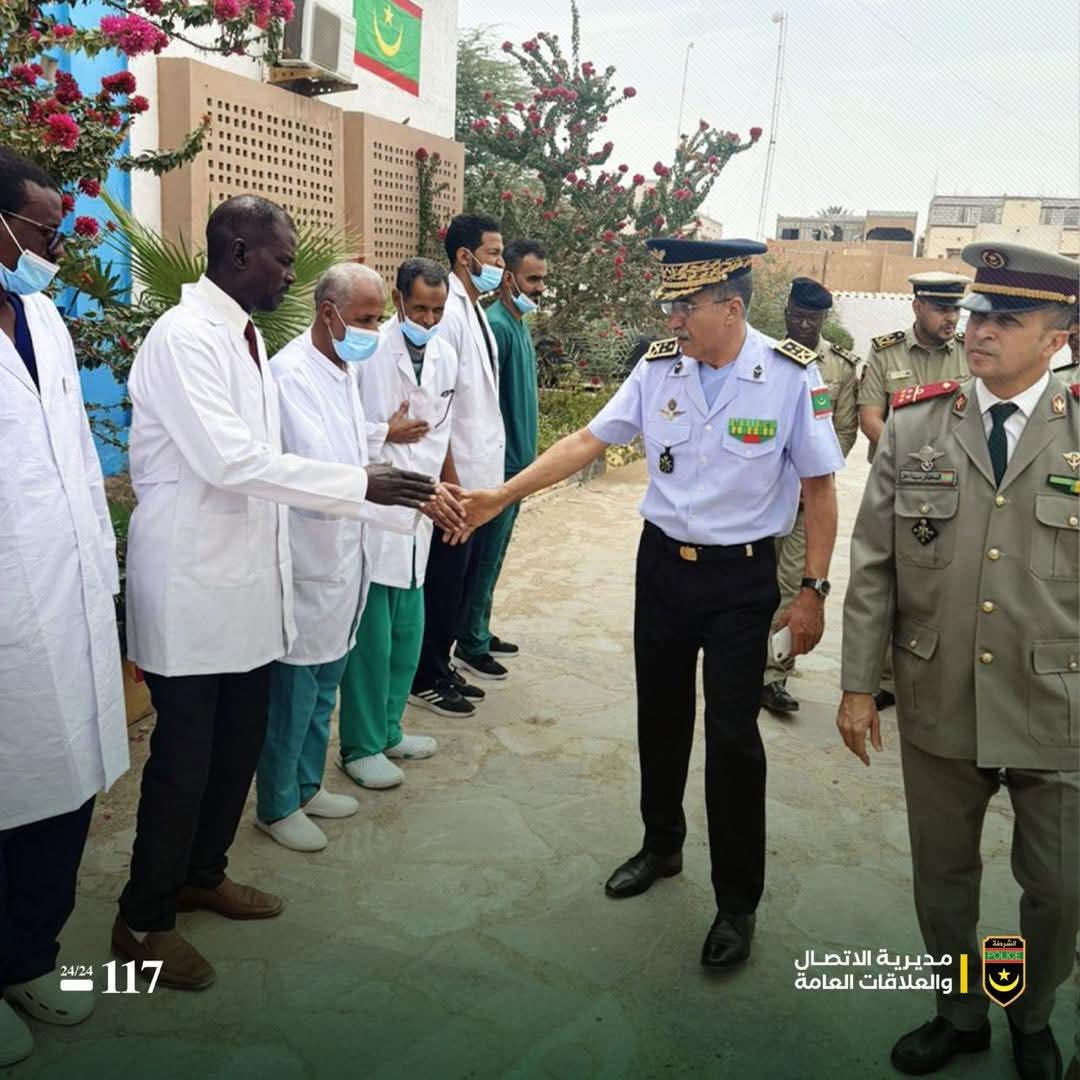 قام المدير العام للأمن الوطني الفريق محمد ولد لحريطاني صباح الأحد 15 مارس 2026 بزيارة تفقد واطلاع للمركز الصحي للشرطة الوطنية، حيث اطلع خلال الزيارة على مختلف الخدمات الصحية التي يقدمها المركز لمنتسبي القطاع وأسرهم، وزواره من المواطنين.