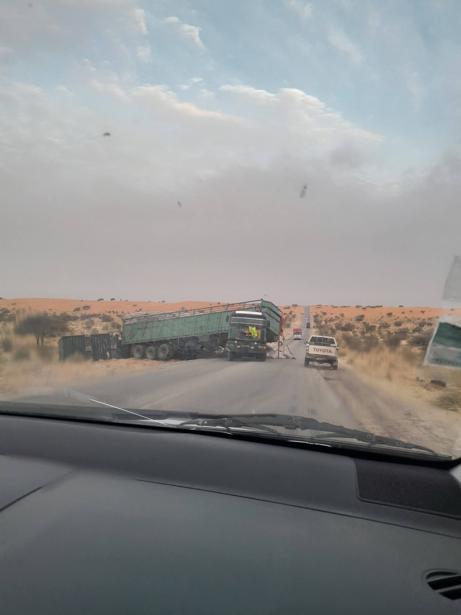 تعطلت شاحنة على طريق الأمل، عند الكلم 94 من نواكشوط، ورغم ما تشكل من مخاطر على سلامة المسافرين، فإن الجهات المختصة لم تبذل أي جهد لإزالتها.