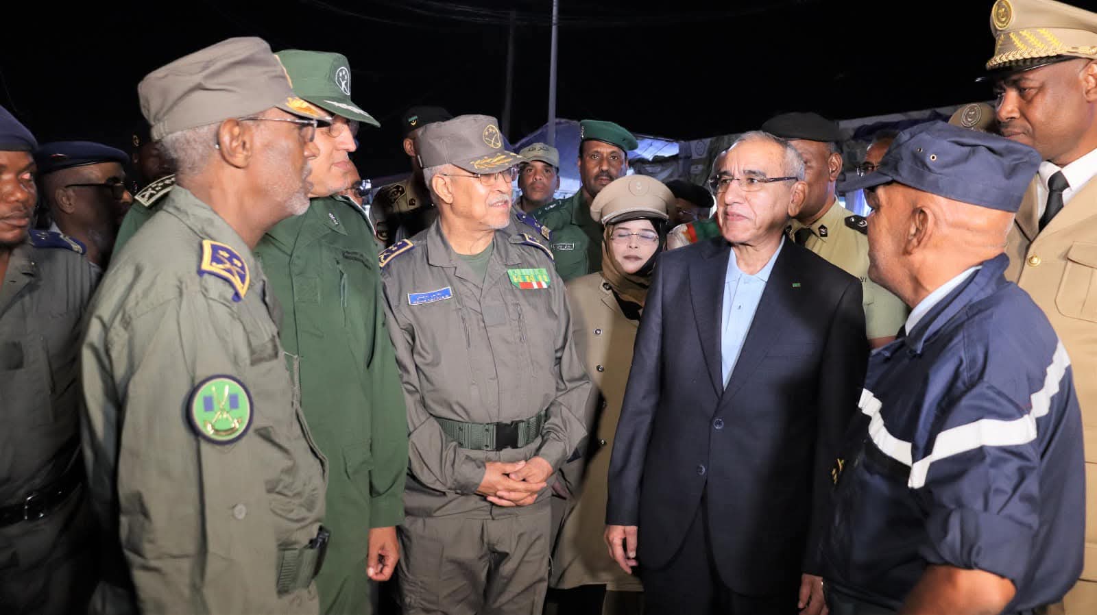 فقد رافقه الفريق براهيم فال ولد الشيباني قائد الحرس، الفريق محمد ولد لحريطاني المدير العام للأمن الوطني الفريق احمودي ولد الطايع قائد الدرك، والجنرال ابو المعالي منان قائد مندوبية الحماية المدنية.