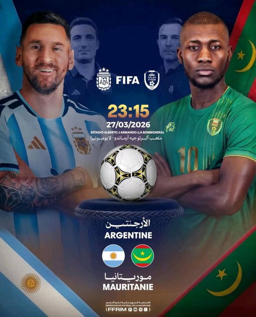 يأتي اللقاء التاريخي المرتقب بين بطل العالم لكرة القدم بقيادة الأسطورة ليونيل ميسي و المنتخب الوطني الموريتاني المرابطون ،