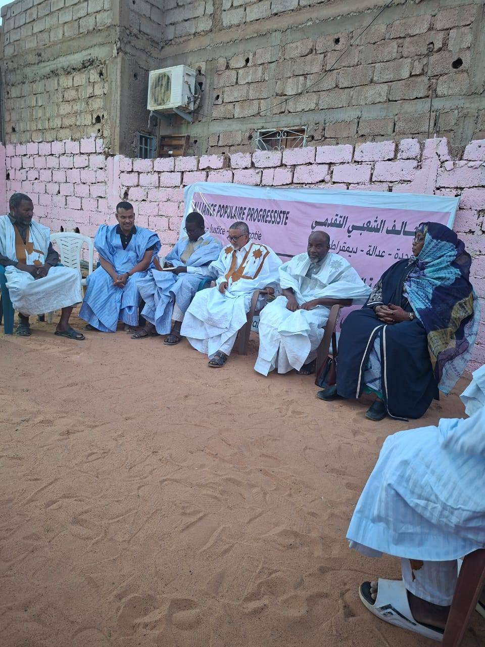عقدت بعثة التحالف الشعبي التقدمي مساء الأربعاء، اجتماعا مع مكتب قسم ازويرات عاصمة ولاية تيرس زمور، ترأسه رئيس البعثة الأمين العام المساعد أحمد محمود ولد يعقوب وبحضور الأمين التنفيذي المكلف بالتنظيم والتوجيه سمت ولد بلال والأمينة التنفيذية المساعدة المكلفة بالنساء والشباب فاطمة صمب منكان والمنسق الجهوي لولاية تيرس عالى ولد حوات والأمين العام للقسم وأعضاء مكتبه.