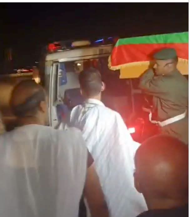 فقد أقيمت صلاة الجنازة على الفقيدة بحضور السلطات الإدارية العسكرية والأمنية والمنتخبين وابني الفقيدة الذين حضرا مع جثمانها من الدوحة ونجل الرئيس الأسبق الأكبر أحمد وكريمته زينب وأشقاء الفقيدة وأقاربها والعشرات من الأطر والأعيان، وتم دفنها في مقبرة المدينة، تغمدها الله بواسع رحمته، وألهم أسرتها الصبر والسلوان و"إنا لله وإنا إليه راجعون".