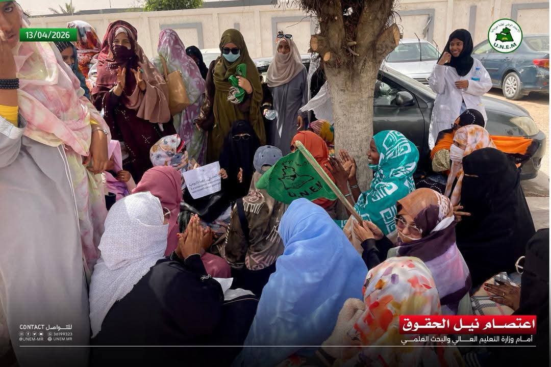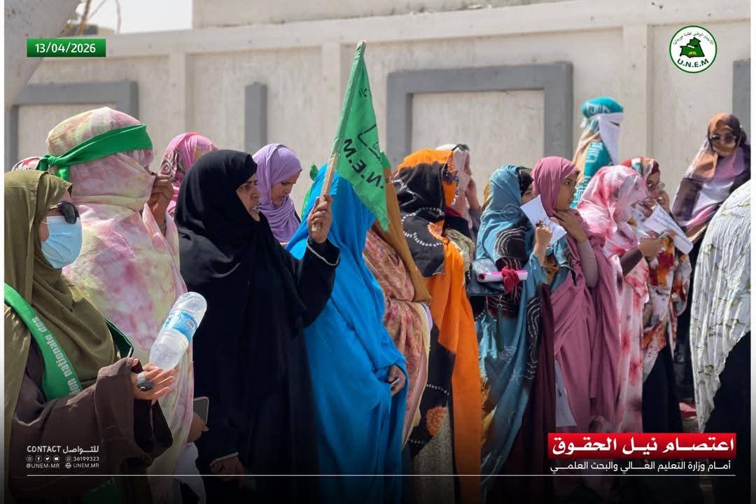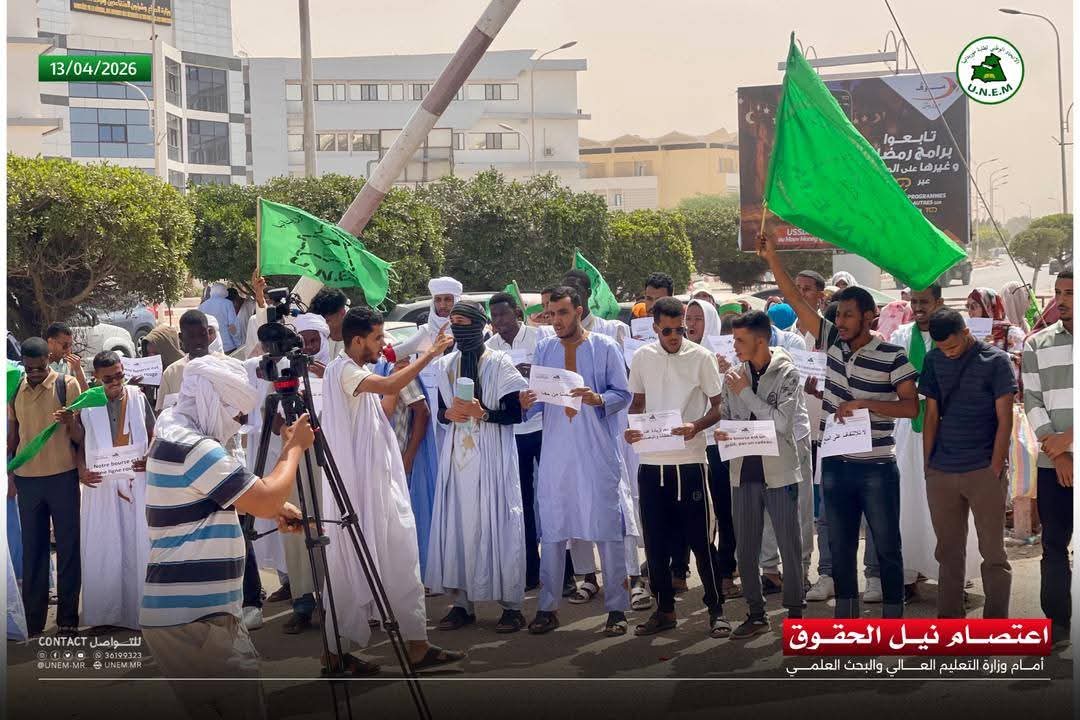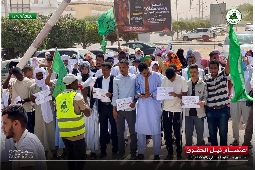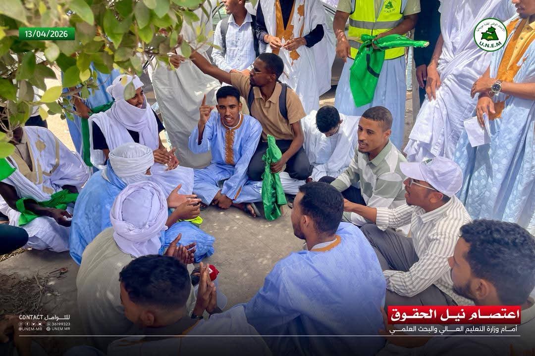جاء في إيجاز صادر عن الاتحاد الوطني لطلبة موريتانيا: "أعلن الاتحاد الوطني لطلبة موريتانيا اليوم الإثنين 13 أبريل 2026 الدخول في اعتصام تحت شعار "نيل الحقوق" أمام وزارة التعليم العالي والبحث العلمي عقب مهرجان "كفى استهتارا بحقوق الطلاب".