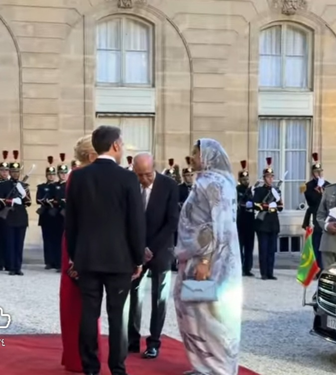 امتنعت يوم الأربعاء، السيدة الأولى مريم بنت محمد فاضل ولد الداه عن مصافحة الرئيس الفرنسي ماكرون، عند بواب قصر الألياف.